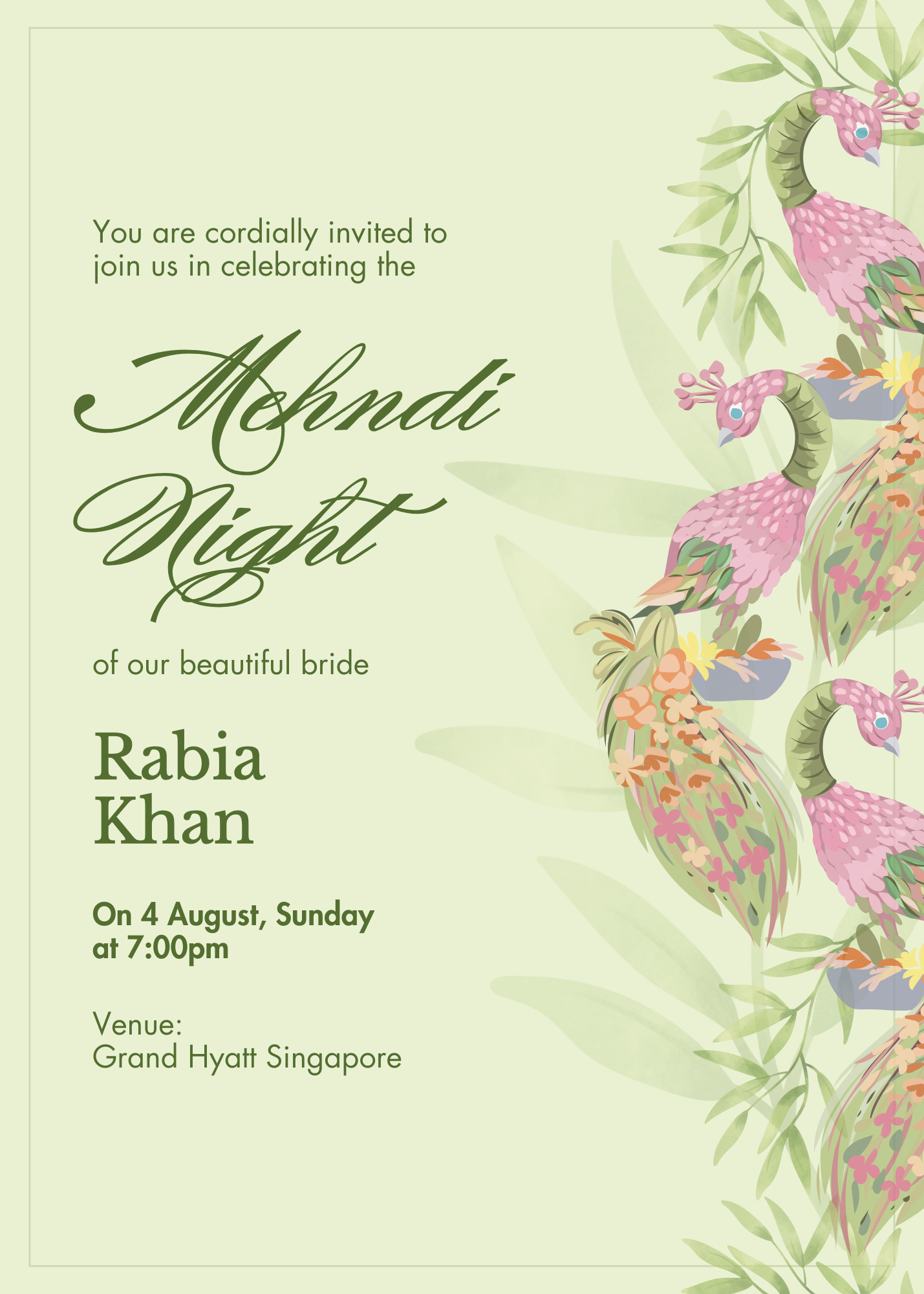 Rabia's Mehndi Night Invitation.