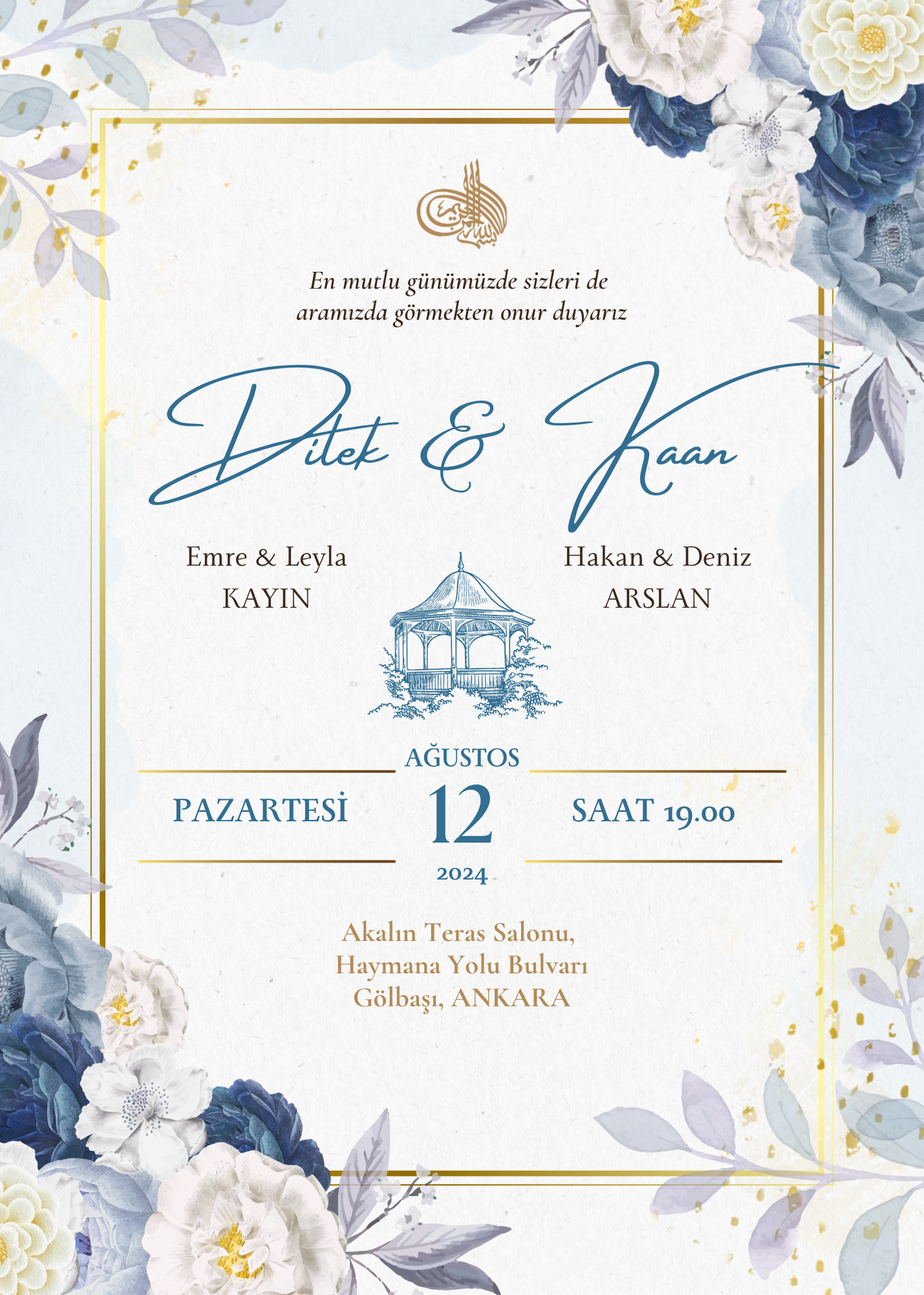 Düğün davetiye örneği.