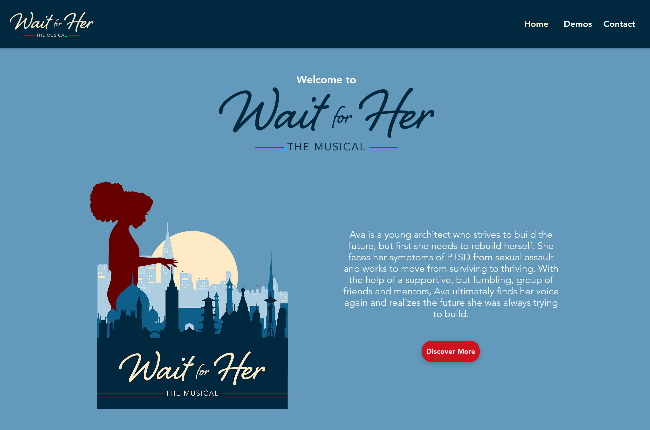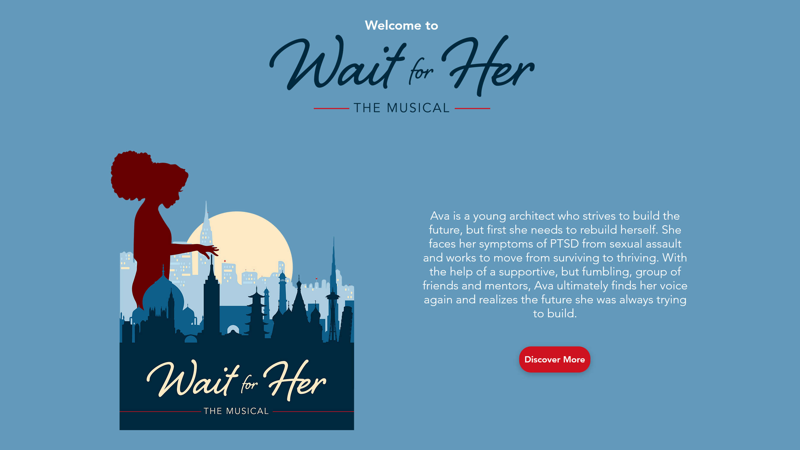 Home page for Wait for Her The Musical's official website.